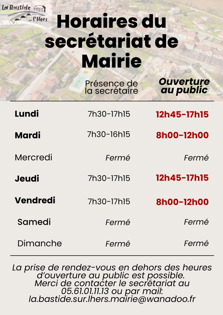HORAIRES DU SECRÉTARIAT DE MAIRIE