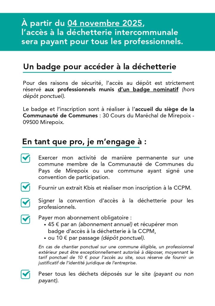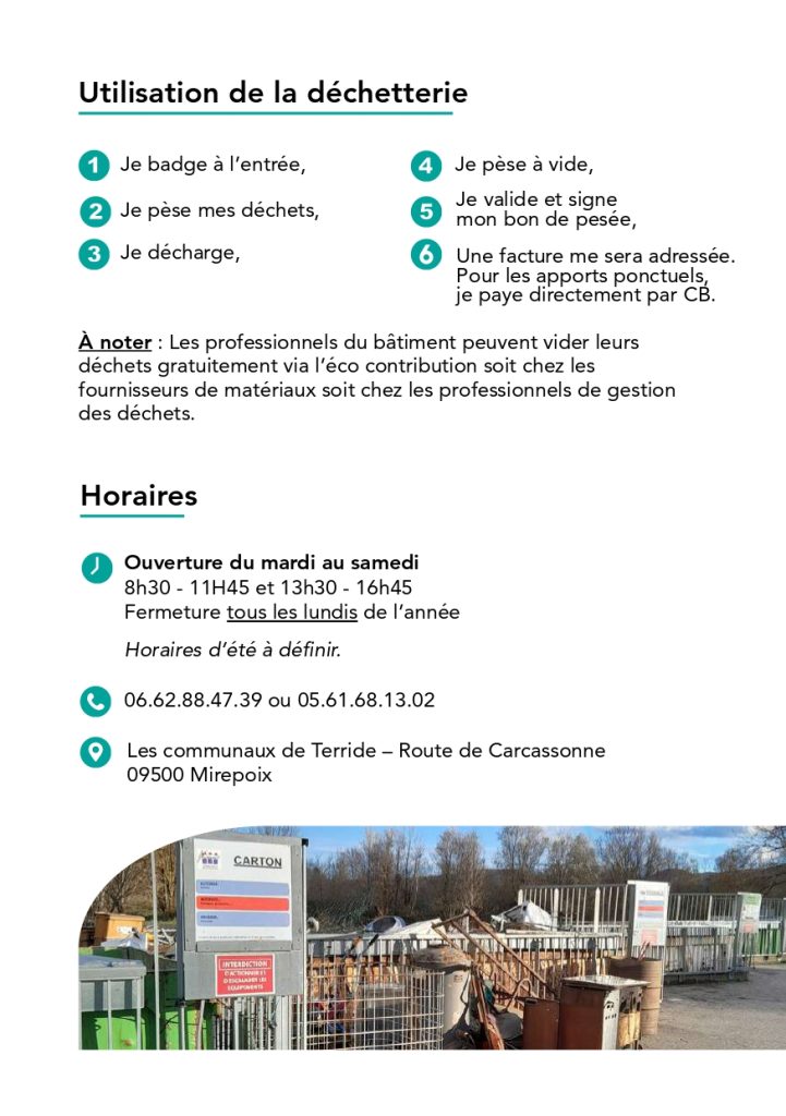 Voici des informations relatives à l’accès de la déchetterie de Mirepoix: